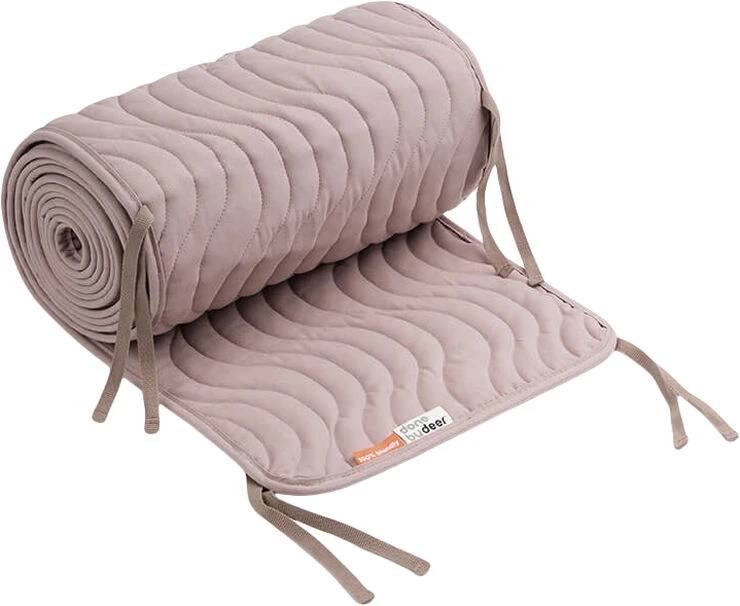 Den quiltede sengerand i blødt økologisk bomuld har et let polyesterfyld, der beskytter dit barns hoved, når der tumles rundt i tremmesengen. Sengeranden er perfekt til at indrette en hyggelig seng og matcher sengetøjs-kollektionen fra Done by Deer. Den bløde sengerand har praktiske bånd, der gør det nemt at fastgøre den til tremmesengen. Sengeranden måler 360 cm., hvilket gør den velegnet til de fleste babysenge. Lad din baby rejse til drømmeland omkranset af den powder sengerand i det fine, quiltede Waves mønster. Sengeranden kan vaskes ved 30 grader i vaskemaskinen.