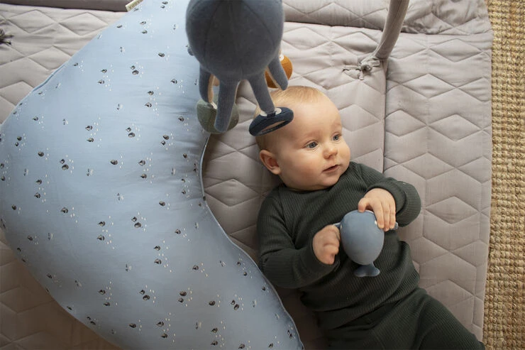 Wave therapy er designet med udgangs punkt i vores velkendte og populære LED hval. Printet er med sine håndtegnet skibe, bølger og hval med til at skabe en helhed og understøtte vores bånd til havet – havet giver os en indre ro og inspiration. Printet kommer i en fin blå udgave, som for os symbolisere fred, harmoni og oprigtighed. Wave therapy kommer i fuld serie, så der er mulighed for at skabe et komplet harmonisk univers. En skøn ammepude fremstillet i 100% økologisk bomuld med polyester fyld indeni. En ammepude der tilbyder komfort og optimal støtte til både mor og barn. Med en lynlås funktion er det nemt at tage betrækket af så det kan vaskes efter behov. Husk at strække betrækket når det kommer ud af vaskemaskinen, sæt det på ammepuden og lad det tørre på, dette er for at mindske at betrækket krymper.