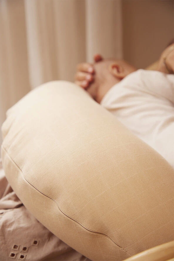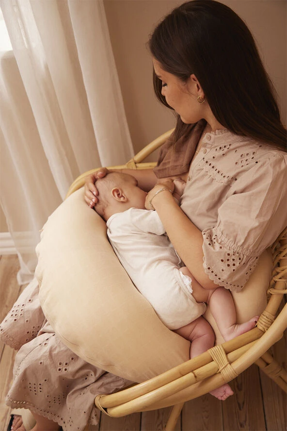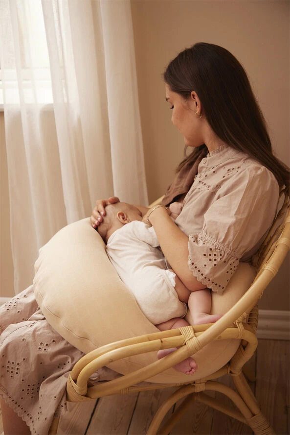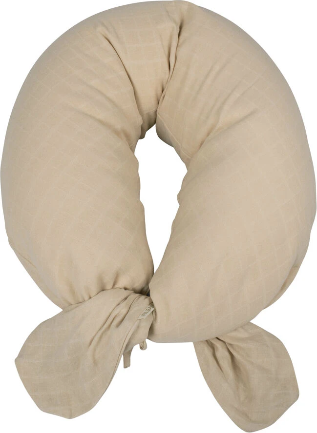 Juno multipuden er en videreudvikling af vores klassiske ammepude, som følger dig gennem hele din graviditet og dit barns første år. Betrækket på vores Juno pude er lavet af 100% økologisk bomuld, og puden har mange funktioner. Du kan bruge din Juno pude som: Graviditetspude Ammepude Rede / stol til baby Støtte ved mavetid for baby Opdag alle Junos funktioner: Som graviditetspude aflaster Juno din lænd, dit bækkenområde, dine ben og ikke mindst din voksende mave. Efter fødslen skaber Juno god støtte til alle forældre og baby, når I ammer eller giver flaske. Ammer du liggende, støtter puden din babys ryg, mens den ved laid back amning eller amning i en siddende position giver ekstra stabilitet. Dette er meget vigtigt, for når du sidder og ligger behageligt, kan både dig og din baby slappe helt af under måltiden. Dette gør ikke kun, at forældrene undgår ømme arme og skuldre, men kan også bidrage til at baby får bedre fat om brystet og sutter mere aktivt. Derudover muliggør det en lang og tæt kontakt mellem forældre og det lille barn. Ved legetid kan du binde pudens enderne sammen og skabe en hyggelig rede for din baby. Også ved mavetid er Juno multipuden en god følgesvend på gulvet. Du skal blot lægge barnet hen over puden for at hjælpe baby med at udvikle stærke nakke- og skuldermuskler og fremme babys motorik. Er baby klar til at sidde op, kan puden bruges som støttepude til ryggen. Senere gør puden legehjørnet og de små huler endnu mere hyggelige. Vores multipude er fyldt med antibakterielle Krøyer-kugler, som gør multipuden nem at forme, og som skaber en fantastisk ligge- og spise-komfort. Betrækket er lavet af 100% økologisk bomuldsmusselin, som giver puden en silkeblød overflade. Betrækket kan nemt tages af og vaskes ved 40 grader.