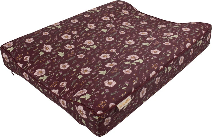 Svøb din baby i fantastiske efterårsfarver med vores Fall Flowers print. Som med alle FILIBABBA-produkter har vores designer tegnet dette print med stor omhu for detaljerne. Fall Flowers fejrer efterårets farver med smukke høstanemoner, som får selskab af små vilde blomster fra grøftekanten, mens den mørke bundfarve skaber en fredfyldt baggrund for alle de farverige blomster. Vores skønne puslepude er fremstillet i økologisk satinvævet bomuld med en polyesterskumkerne. Derudover har vores puslepude et PU-lag (polyurethan), som gør puslepudens overflade vandafvisende og nem at tørre af efter bleskift. Er uheldet ude, hjælper den skjulte lynlås dig med at tage betrækket hurtigt af, så du kan vaske det efter behov. Husk at trække betrækket i form og putte det direkte på skumkernen efter vask. Lad betrækket tørre på sengeranden for at mindske risikoen for, at det krymper.