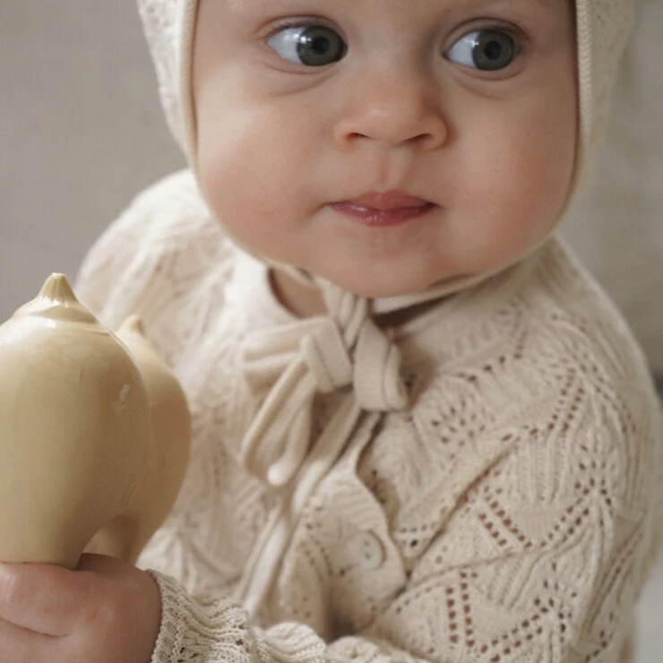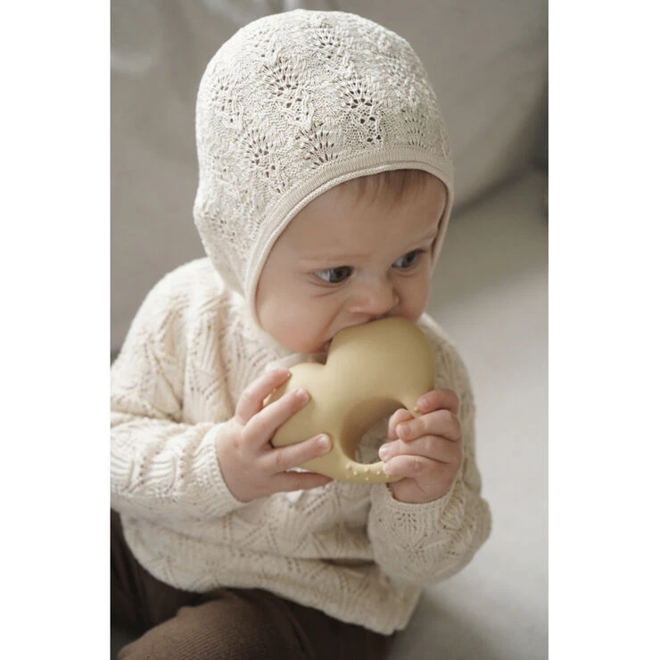 Cute boobs made in 100 % natural rubber for soothing babies sore gums. The rubber toys fits the tiny hands and helps to keep babies calm and distracted. Clean the toys with a damp cloth or with soapy water (max. 30 degrees). Do not use any chemicals on the rubber toy. WARNING •Always examine the product carefully before use, to make sure there is no damages •Do not expose the toy to direct sunlight and keep away from sources of heat •The details and color on the product may vary as it’s handmade •This product contains natural rubber which may cause allergic reactions •Please keep the packaging as it contains important information •Remove all packaging and strings prior to use •Do not leave a child alone while using the rubber toy DESCRIPTION •100 % Natural rubber •Handpainted with food grade paint •BPA and phtahalate free •EN-71-3-2013- Migration of certain elements •EN-71-1-2014- Mechanical and physical properties •EN-71-2-2011- Flammability •Non-toxic •EN 71-9- Migration of heavy metal •EN 71-12-2013- N-nitrosamines and N-nitrosatable substances •ASTM F963-11 Clean the toys with a damp cloth or with soapy water (max. 30 degrees). Do not use any chemicals on the rubber toy.