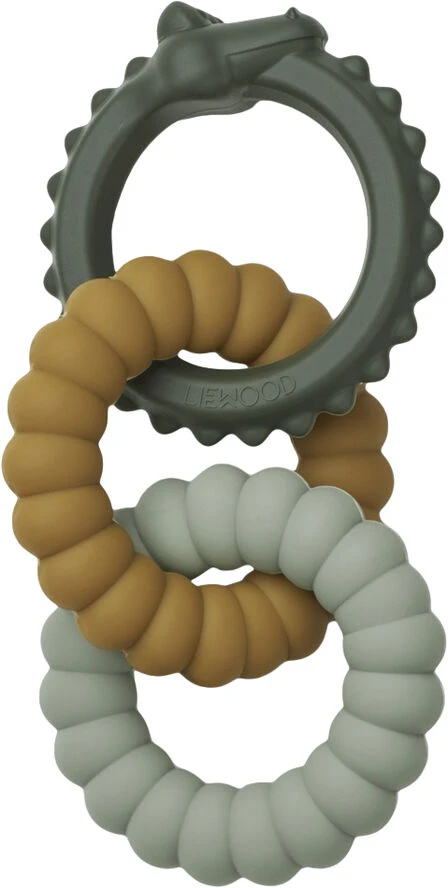 BABY TEETHER Provides soothing comfort and stimulates the eruption of the babys new teeth Three interloping rings two with classic bubble shapes and one with animal detail This is a slightly bigger version of Herbert Teether Lightweight and easy for little hands to grasp Hypoallergenic Easy to clean CE-marked
