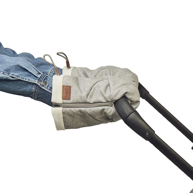 Najell håndvarmer er designet til at passe til den Skandinaviske vinter, så dine hænder holdes varme i alt slags vejr. Den består yderst af et vandafvisende og på indersiden et vindtæt materiale som holder hænderne varme og tørre under alle vejr forhold. Den består af en lang og rummelig manchet som passer til alle håndled og jakker. Med to stropper kan man justere den så den passer om håndleddene og ikke slipper kold luft ind. Håndvarmeren fæstes let på alle barnevogne uafset håndtagets udseende. Med en indvendig lomme kan man vælge mellem at have hænderne direkte på barnevogns håndtaget eller i lommen, alt efter om man vil have et sikkert greb om håndtaget eller få den ekstra varme i den indre lomme.